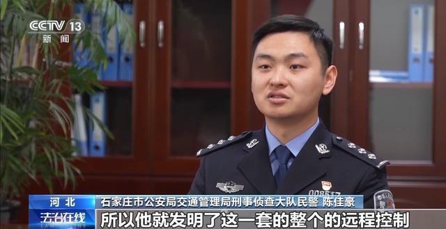 石家庄市公安局交通管理局刑事侦查大队民警 陈佳豪:在侦查过程中发现,有一名技术人员对技术和软件硬件都非常了解,他发明了这一套的整个的远程控制,包括信号传输的方法。