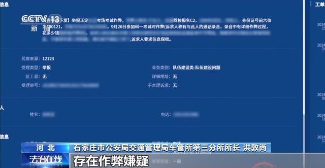 石家庄市公安局交通管理局车管所第三分所所长 洪敦尚:我们发现了由交管局民意中心转办的一项工单,但是举报人举报的内容非常笼统模糊,只是说石家庄某考场理论考场存在作弊嫌疑,但未提供具体的情况。
