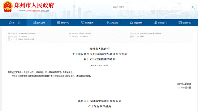 6月5日,郑州市人民政府印发《郑州市支持河南中牟新区加快发展若干先行政策措施》,共涉及18条举措。