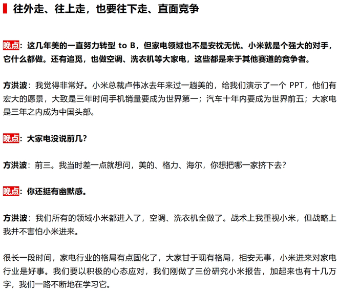 4月份,方洪波在接受《晚点LatePost》专访时曾提到与小米竞争的话题。