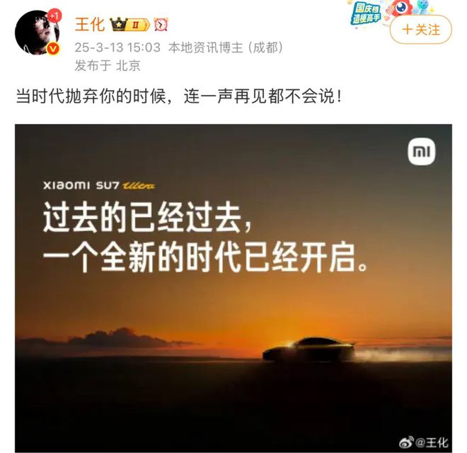 当时,小米公关总经理王化在微博发文:“当时代抛弃你的时候,连一声再见都不会说!”