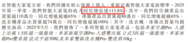 财报显示,今年一季度,小米智能大家电收入同比增长113.8%,空调产品出货量超110万台,冰箱和洗衣机出货量均创历史新高。