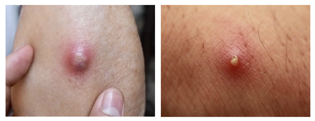 疖的皮疹初起为与毛囊口一致的红色实性小丘疹,逐渐增大成红色硬性结节,有疼痛及压痛,通常 2~3 天后,结节会化脓坏死而形成脓肿,有时还可以伴有发热、头痛不适等全身症状。