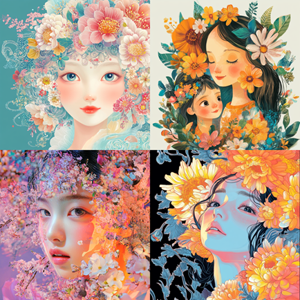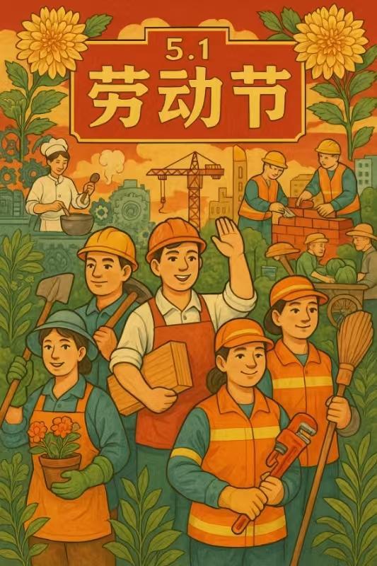 母爱主题作品将伟大母亲形象与多彩花卉元素巧妙融合,通过梦幻花卉簇拥、阳光花环、樱花、向日葵等意象,艺术化地诠释了母爱的温暖、包容、细腻、坚韧与永恒;劳动节主题作品生动刻画了建筑工人、厨师、环卫工人等不同职业劳动者的大美形象,背景辅以高楼、机械等元素,有力传递了劳动创造价值、奋斗铸就梦想的精神品质,充分张扬了劳动光荣、技能宝贵、创造伟大的时代风尚。
