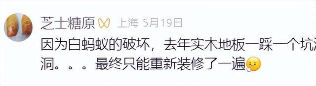 专家表示,随着居住条件的不断改善,室内装饰装修为白蚁提供了丰富的食物,加之空调的使用为白蚁提供了适合的生活温度,使房屋更加容易遭受白蚁危害。“建议居民在装修前,观察房屋周围是否存在吸引白蚁生存的环境,如水源、食材等白蚁喜欢的条件、环境,如存在,建议酌情考虑提前采取白蚁预防措施”。