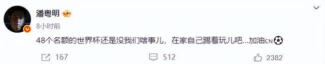 国足再次无缘世界杯,演员潘粤明深夜发文:48个名额还是没我们啥事儿;此前曾多次为国足发声