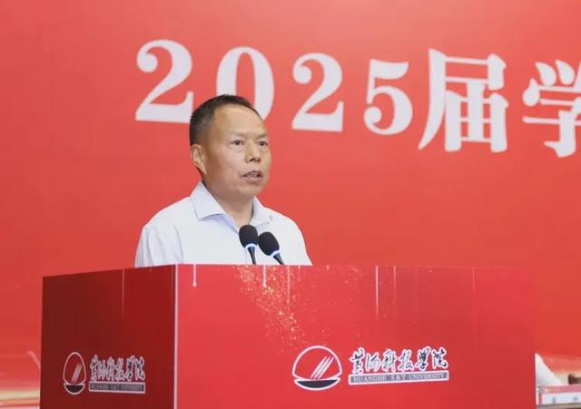 典礼上,毕业生代表、商学部物流管理专业学生陈禹名表达了对母校的感谢和祝福;优秀校友代表、2010届电子信息工程专业毕业生,现任洛阳市新安县副县长(挂职)、信阳师范大学淮河校区软件学院院长的李然分享了在工作中传承母校精神的感受和体会;教师代表郝红英代表全体教师为2025届全体毕业生送上真诚的祝福。