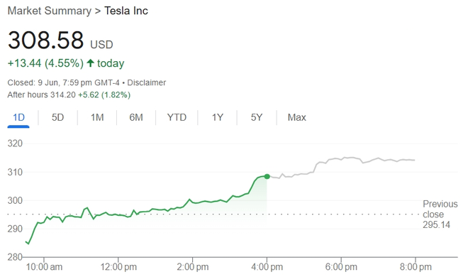 或许是受到上述消息影响,美股周一收盘时,道指初步收跌1点,标普500指数涨0.09%,纳指涨0.31%,特斯拉涨4.55%。
