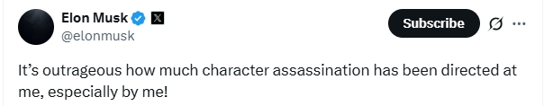 “针对我的人身攻击实在太过分了,尤其是来自我自己的攻击!”马斯克发文写道。