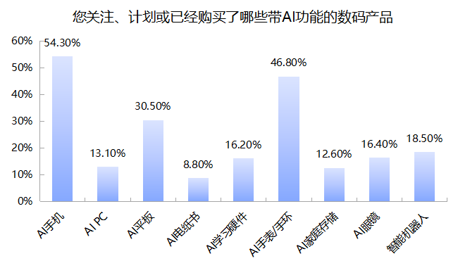 一年一度的电商618大促正在进行,消费市场再度火热。整体来看,3C数码品类线上市场仍处于快速增长阶段,各大平台正通过差异化策略争夺市场份额。从销售增速来看,各大平台均呈现出不同程度的增长态势,京东以50%以上的增速领跑,淘天集团(天猫+淘宝)整体增速超过30%,抖音同样以50%以上的增速紧追,拼多多增速超过30%,快手增速也超过40%,3C数码品类持续受到消费者关注。近日,时代周报发起《618消费者购买3C数码产品趋势》调查,进一步了解消费者在电商大促期间购买3C数码产品,尤其带AI功能的产品的情形。此次调查问卷共收集3000份,25岁-44岁的受访者占比达67%,来自二三线及以上城市的受访者占比八成,普通上班族的比例约为70%。相较以往,带AI功能的3C数码产品今年更受青睐,超过一半的受访者明确表示AI功能是新趋势,对此非常感兴趣。而在购买平台方面,京东因售后保障、价格优惠和产品品质等因素,成为消费者购买3C数码产品考虑最多的平台。众所周知,电子行业产品技术升级快,消费市场一度有着较明显的换机周期。该周期往往取决于产品的技术迭代或上新时间。近年来随着消费电子趋势的变化,一些数码产品的换机周期有所延长,消费者在做出购买决定时显得尤为谨慎。此前平安证券就发布研报称,针对数码产品的补贴有利于降低购机成本,刺激消费者的购机需求。另外随着全球AI手机渗透率持续提升,也看好AI背景下的换机周期。具体到今年618,智能手机、智能穿戴装备和无线耳机,在受访者已经或计划购买的数码产品中排名靠前。预算方面,34%的消费者预算在3000元-5000元,占比最高;预算在5000元以上的占比也达到30%。带AI功能数码产品关注度高 AI手机最抢手据了解,今年618京东重点关注的AI品类达到九种,包括AI机器人、AI眼镜、AI手机、AI电脑、AI平板、AI教育硬件、AI智能音箱、AI家庭存储、AI电纸书等。销售数据层面,AI相关商品更是成为不折不扣的黑马。618截至目前,在带AI功能的数码产品中,AI手机、AI手表/手环、AI平板占据受访者重点关注(或购买)的前三位。3000份有效问卷中,关注或已购买AI手机的人数达到1628人;这个数字在AI手表/手环和AI平板上分别是1404人和914人。或许较出乎意料的是,关注或已购买智能机器人的消费者达到556人,一定程度上反映出今年机器人行业的火热。对消费者而言,技术尝鲜或是购买AI数码产品的一大原因,但功能实用性无疑仍是决定性因素。具体到功能层面,如在电脑产品中,最受关注的前五位AI功能是AI图像视频处理、AI办公软件、AI智能助理、AI翻译功能和AI文档写作;在手机产品中,则是AI翻译、AI语音智能助手、AI相机、AI健康检测和AI识图;在学习硬件产品中,则是多思路解题、AI口语训练、学习路径规划、AI作业批改以及护眼与坐姿管理。而在智能穿戴产品的细分中,智能手表的健康监测和运动分析成为关注程度最高的AI功能;其次是智能耳机和智能眼镜的相关功能,比如智能降噪、第一视角摄影摄像以及图像识别等。今年的618大促,国补政策无疑是一大利好。中信证券最新研报表示,从品类维度看,618大促“国补+平台补”的低价心智与国补品类高客单价、长周期消费决策的特征更为契合。这一点在销售数据上也得以体现——从初期数据来看,国补品类的表现就非常强势。除了国补,京东618期间还推出“京补合约”的购机新方式,消费者可叠加合约购机补贴和国家补贴,同时获得新号卡和话费套餐。尤其值得说明的是,消费者可通过“京补合约”下单6000元以上的手机产品,享受到更多补贴优惠。此外,88%的消费者还表示,会因为国补而增加下单频次。在新品方面,近70%的消费者则称,购买3C数码的新品时已使用过国补。进一步来看,在诸多影响国补使用体验的因素中,“国补可以叠加其他优惠”成为消费者做出上述选择的首要原因。其次,售后服务保障、物流速度快、正品品质、补贴券使用方便,以及覆盖品类更丰富齐全等,也是消费者考虑的重要因素。而这与京东的传统优势十分契合。综合调研数据来看,618固然掀起的是一场购物热潮,但它同时是观察行业和消费趋势变化的一个重要窗口。对各电商平台而言,新一轮的考验正在进行当中。