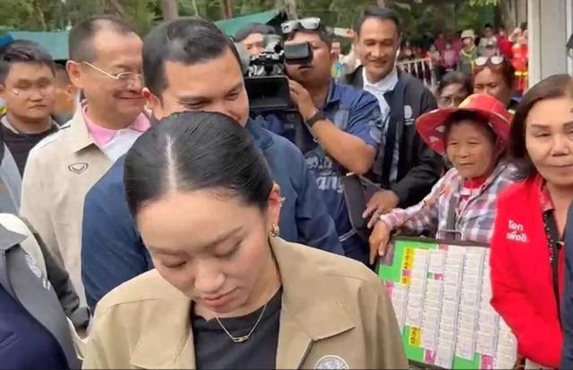 佩通坦11日前往素林府巡视边境情况。她在结束工作上车前,在一个流动彩票女小贩面前停了下来,正打算掏钱买彩票时,随行的团队人员马上用肘部碰了她一下,说“总理不能买彩票”。