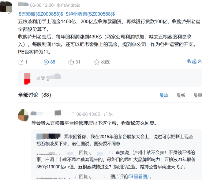有意思的是,这名投资者疑似在参与了雪球网的一则讨论后,才去向 五粮液提了上述问题,称其“ 给管理层扯下这个蛋”。