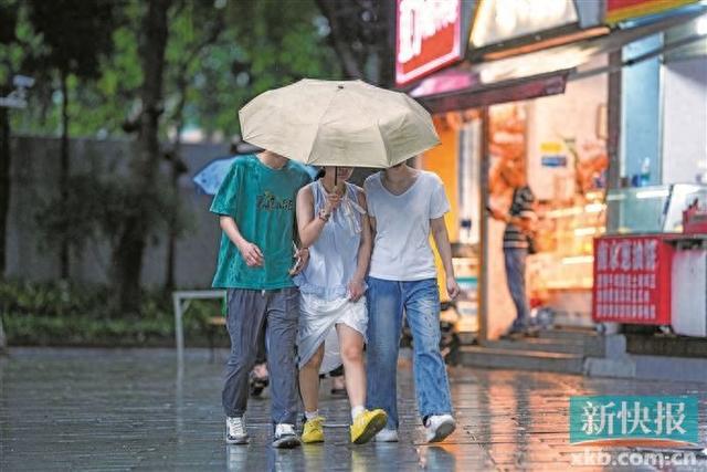 ■6月12日17时许,广州市天河区下起了大雨,在科韵路与黄埔大道交会处,不少市民冒雨出行。 新快报记者郭思杰/摄