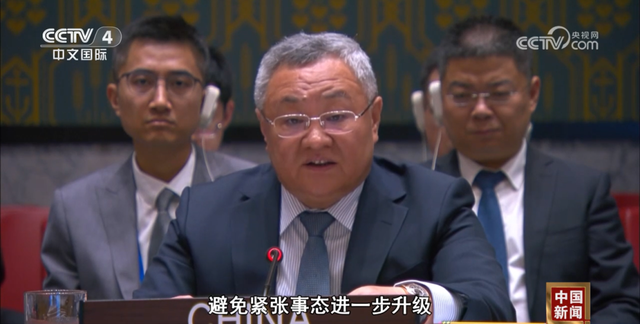 中国常驻联合国代表 傅聪 地区局势再度骤然升温,不符合任何一方利益。我们敦促以色列立即停止一切军事冒险行动,避免紧张事态进一步升级,呼吁有关各方遵守联合国宪章和国际法,通过政治外交手段解决争端,共同维护地区和平稳定。