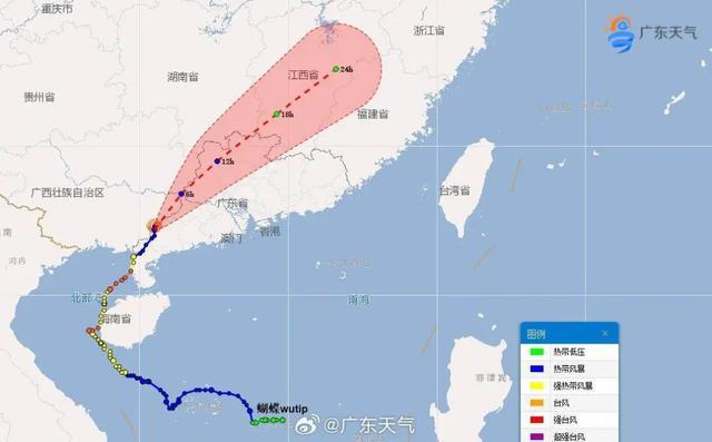 15日04时,“蝴蝶”位于广东省肇庆市封开县境内,中心附近最大风力8级(18米/秒),中心最低气压995hPa,预计“蝴蝶”将以每小时35到40公里的速度向东北方向移动。