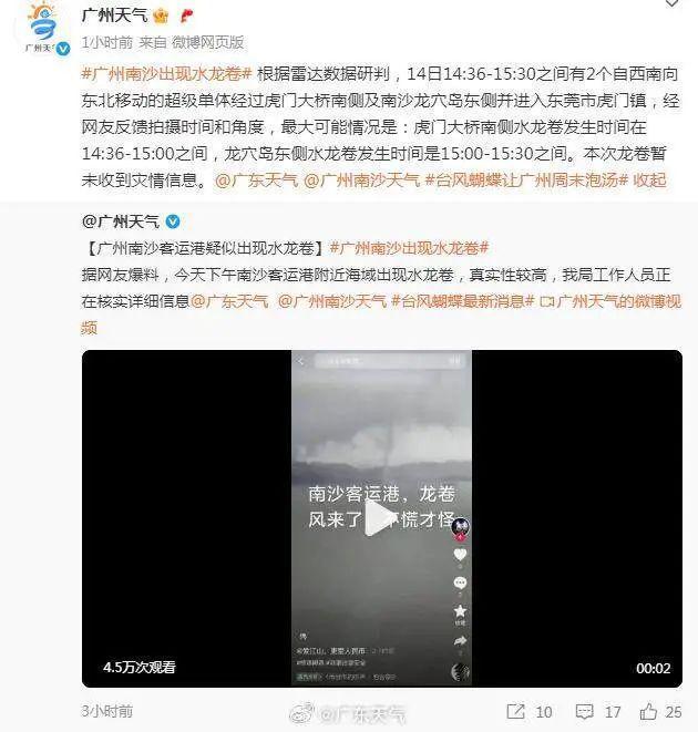 台风“蝴蝶”登陆,广东出现水龙卷!