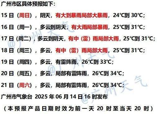 中央气象台预计,今天,华南中东部、江南中东部等地有大到暴雨,其中,广西东部、广东西部和北部、湖南东南部、江西中北部等地的部分地区有大暴雨,局地特大暴雨。16日至17日,南方的降雨将整体减弱,但在江南南部、华南等地仍会有中到大雨,局地暴雨。