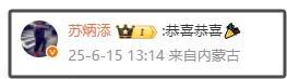 对此,中国田径短跑运动员苏炳添第一时间在评论区送上祝福。