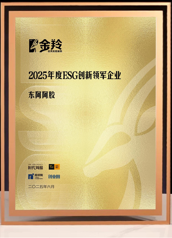 与创新者同行,与ESG践行者携手,聚焦高质量发展,共享突破经验,共谋未来发展。论坛上,东阿阿胶(000423.SZ)凭借在践行ESG理念、科技创新、产品质量提升及品牌塑造等方面的突出表现,荣膺“ESG时代创新领军企业”称号。长期积淀引领绿色发展,筑牢可持续发展根基在可持续发展报告披露方面,东阿阿胶走在行业前列。早在2008年,该公司就披露了第一份年度社会责任报告,并于2023年披露了第一份ESG专题报告。以绿色制造推进低碳发展。东阿阿胶《2024年度ESG报告》显示,2024年,该公司可再生能源发电量接近400万千瓦时,碳减排总量达到430.87吨二氧化碳当量,循环水用量达到96.15万吨,循环水用量占比高达75.12%,低碳循环经济体系运行状态良好。以产品质量锻造品牌信任。2024年,东阿阿胶产品市场抽检合格率高达100%,这是该公司以科技创新和严格的全产业链质量管控提升阿胶品质的有力体现。另外,该公司还频频进行产品质量管理培训,2024年达到75次,平均不到5天培训1次,足见其对产品质量的重视。作为具有深厚文化底蕴的中华老字号中药企业,东阿阿胶在长期经营实践中形成了以“寿人济世”为使命、“厚道 地道 传承 创新”为核心价值观、致力于“成为大众最信赖的滋补健康引领者”为愿景的特色文化体系,这与ESG理念不谋而合。中医药是中华民族的瑰宝,东阿阿胶始终将其传承与创新视为己任。该公司还持续创办具有国际影响力的文化活动、文化论坛,加快落地中华老字号中医药博物馆汇聚文化势能,培育产业动能,为中医药文化事业和中医药产业传承发展贡献力量。其中,复方阿胶浆治疗癌因性疲乏研究成果荣获美国临床肿瘤学会(ASCO)年会“特别优异奖”,成为全球唯一获此殊荣的中国中成药。同时,该公司深化智能制造,加快“智改数转”,健康消费品百亿产业园正式启航,迈向“灯塔工厂”新时代。在推动胶类产业高质量发展的新征程上,东阿阿胶将继续贯彻ESG发展理念,牢牢扛起中医药文化传承创新的大旗,彰显出其作为创新领军企业的风范,争当中医药传承创新发展的典范。