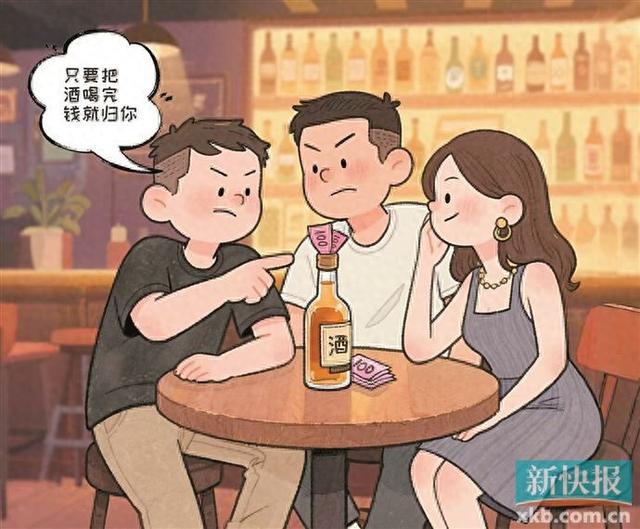 2024年5月12日晚,何某在增城某酒吧喝酒时认识了张某和张某的姐姐,此时他们都已经饮酒。看到卡座上放着大瓶洋酒,何某一时兴起,拿出2000元现金塞在瓶口,并表示只要把酒喝完,钱就归张某所有。