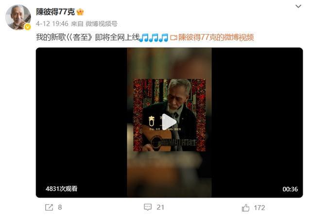 4月12日,陈彼得微博账号曾发布视频宣传新歌《客至》上线。