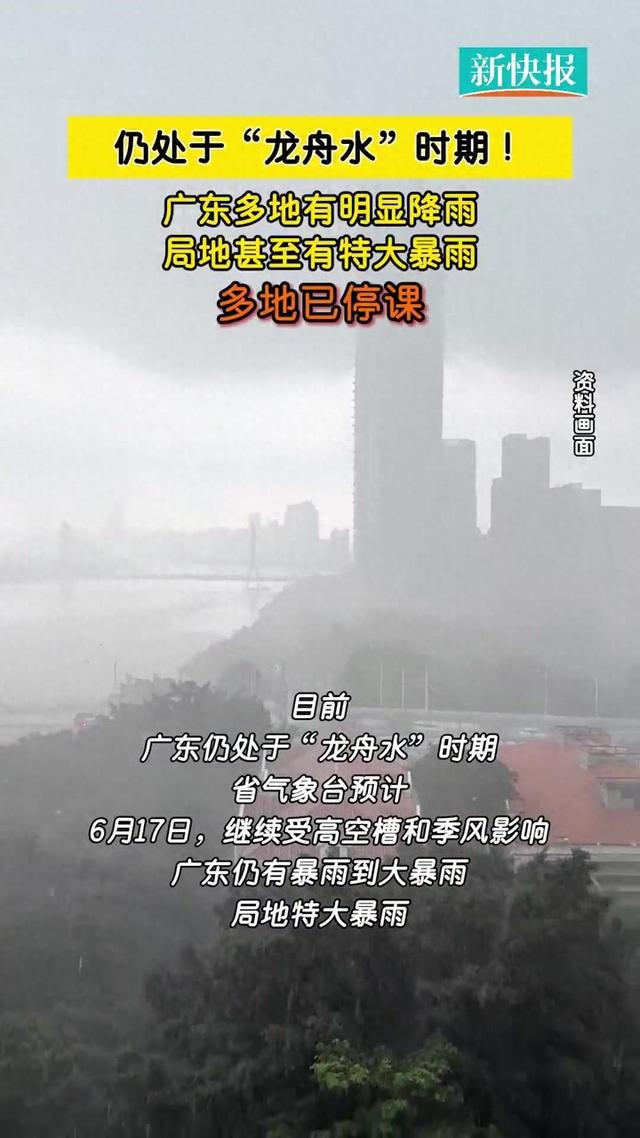 受加强的西南季风影响,昨夜至今晨(6月17日)广东省南部沿海普降暴雨到大暴雨,局部特大暴雨。今晨广东多地发布暴雨预警,广东珠海、中山、江门新会区发布停课通知。