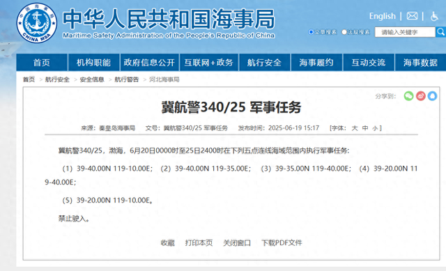 航行警告!渤海部分海域有军事任务 禁止驶入 访客 2025-06-20 174 抢沙发 默认 据中国海事局网站消息,秦皇岛海事局发布航行警告,6月20日0时至25日24时,渤海部分海域有军事任务,禁止驶入。来源:中国海事局 标签: 海事局 中国 海报 阅读 QQ 分享 微博分享 微信分享 分享 上一篇广州查处电动自行车相关违法13.3万宗 下一篇中国女排险胜保加利亚 世联赛中国香港站两连胜 广州查处电动自行车相关违法13.3万宗上一篇 中国女排险胜保加利亚 世联赛中国香港站两连胜下一篇 相关推荐 海事局中国 国际金银24小时行情概览 2025-12-29 国际黄金期货走势分析 2025-12-29 和讯行情数据中心,最新市场数据与行情分析 2025-12-29 股票期货外汇交易概览 2025-12-28 化肥价格行情走势分析 2025-12-28 2022年股票行情展望,市场走势分析与发展预测 2025-12-28 黄金国际价格走势分析 2025-12-28 股票期货诈骗套路揭秘 2025-12-28 发表评论取消回复 快捷回复: 评论列表 (暂无评论,174人围观)参与讨论 还没有评论,来说两句吧...